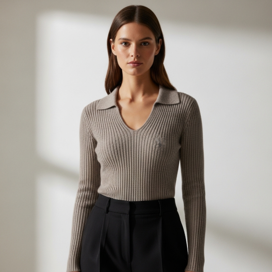 • Tasarım Detayları: Derinliği titizlikle ayarlanmış V yaka kesimi, boyun bölgesini daha uzun ve zarif gösterir. Boyuna uzanan ince fitil (ribana) detayları, silüeti daha fit ve ince algılatır. Manşetlerdeki hafif uzun kesim ve dikişsiz bitişler, premium bir görünüm sunar.