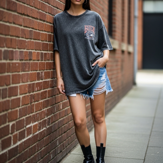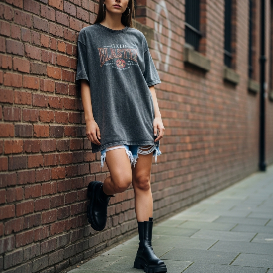 • Kullanım Avantajları: Füme rengin verdiği doğal solgunluk, jean pantolonlar ve deri ceketlerle mükemmel bir uyum yakalar. Taytların üzerine dökümlü bir şekilde bırakılarak veya şortların içine sokularak farklı tarzlara kolayca adapte edilebilir.